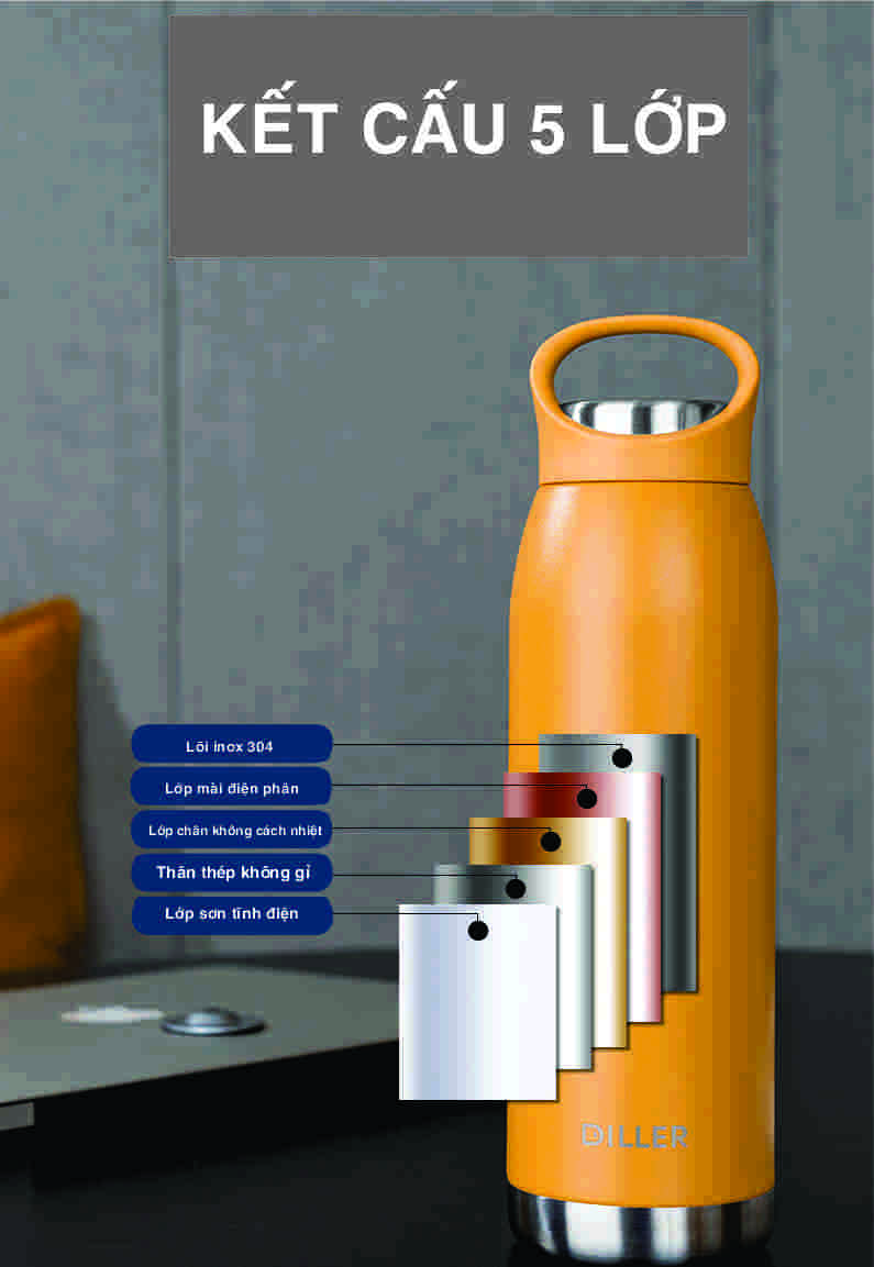 Bình cốc giữ nhiệt cao cấp DILLER thiết kế vừa vặn với dung tích 700ml, có kết hợp quai cầm tinh tế, mang tới giải pháp bảo quản nước ở mọi nhiệt độ tiện lợi, an toàn.