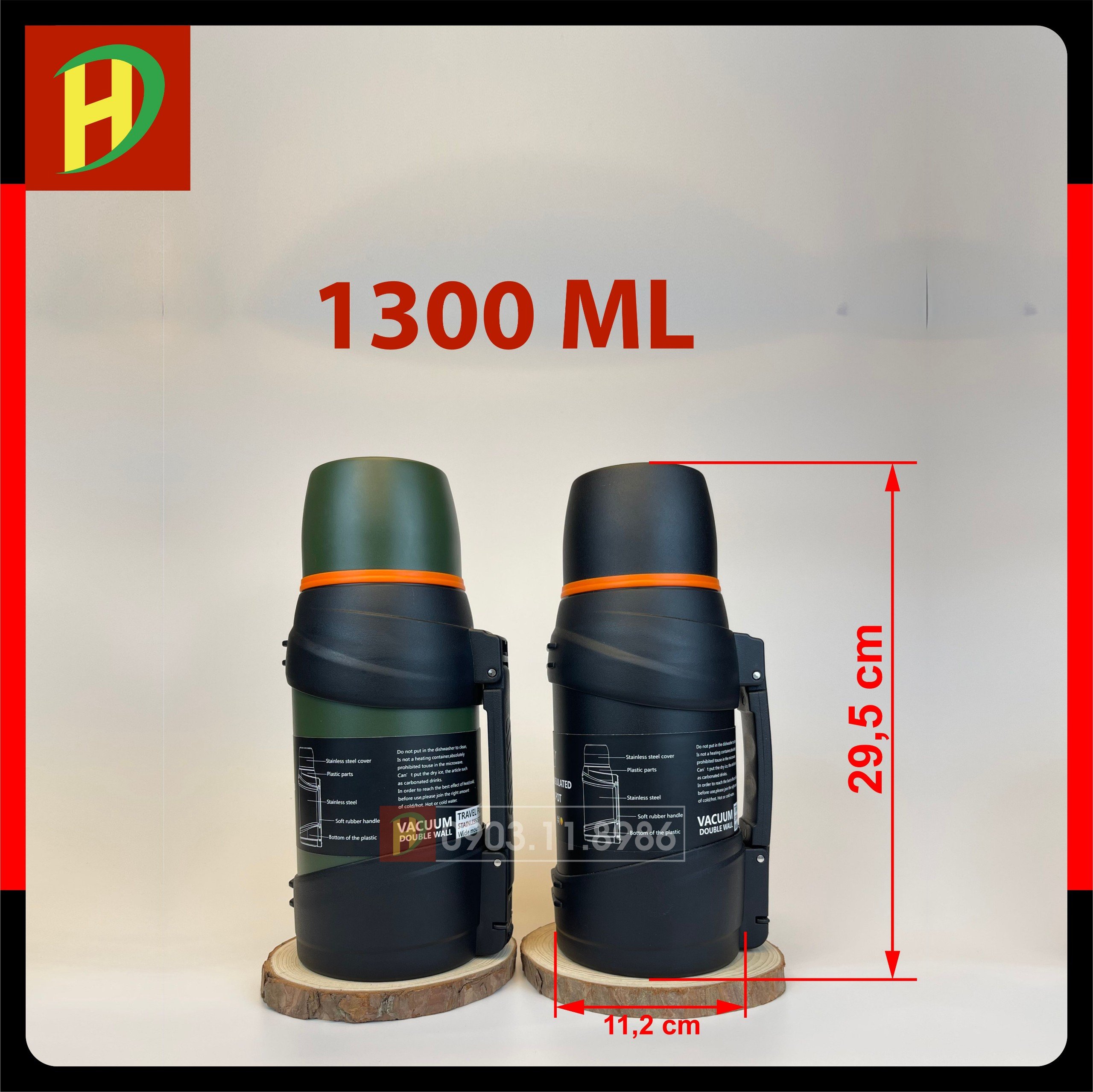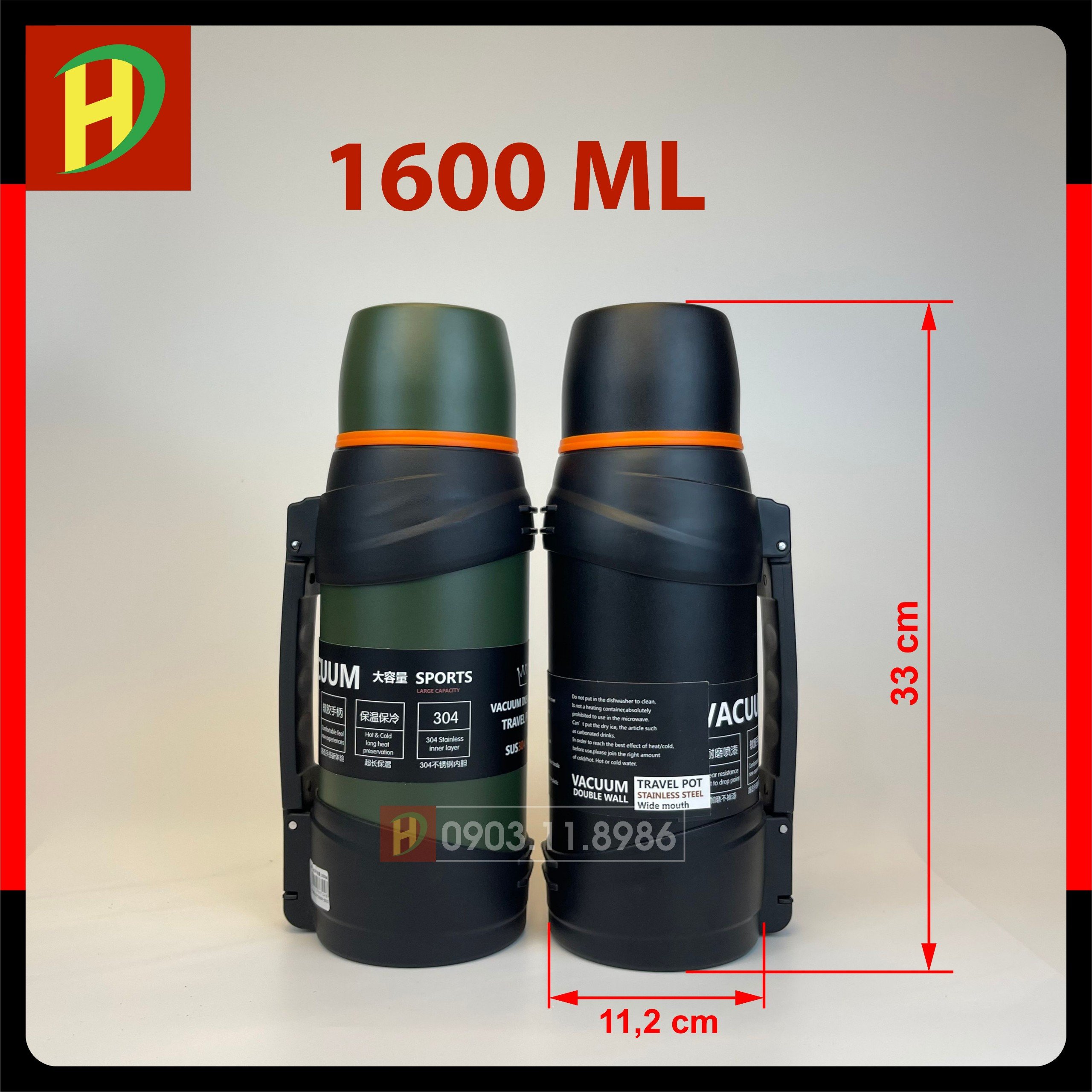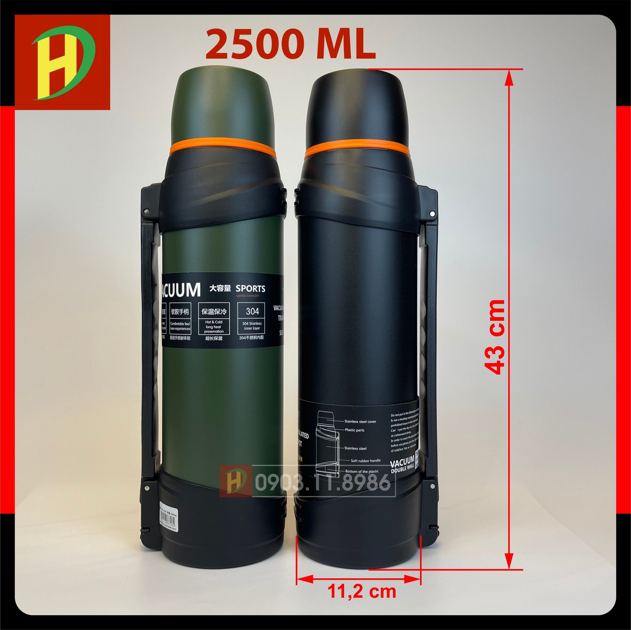 Bình giữ nhiệt inox 304 cao cấp 1300ml, 1600ml, 2000ml, 2500ml có thiết kế cực kỳ cao cấp, bên trong là lớp ruột inox 304 được tráng đồng. Bình được cấu tại bởi 6 lớp cách nhiệt tuyệt đối giúp giữ nóng hoặc giữ lạnh lên tới 24 giờ.
