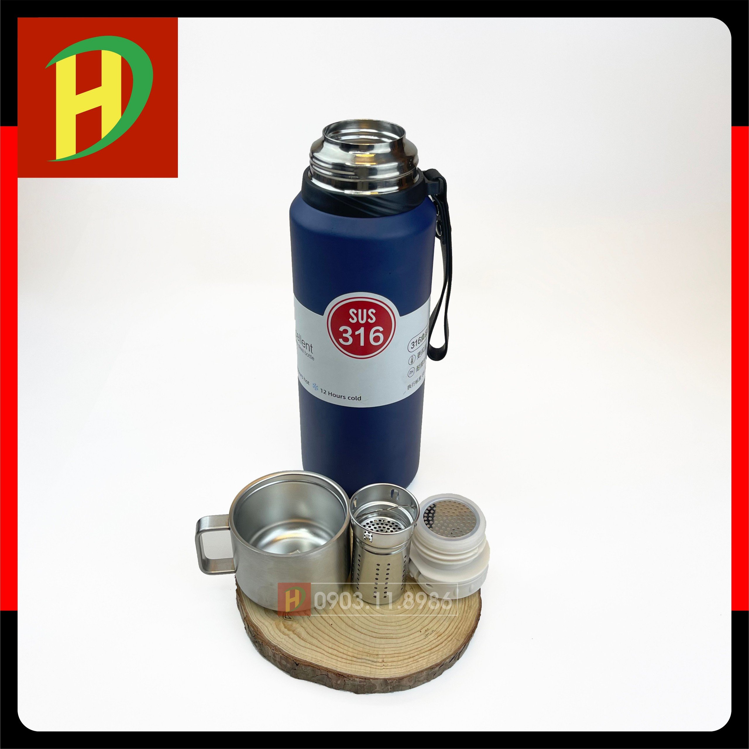 - Bình có lưới inox chặn đá, có lõi lọc trà, quai xách