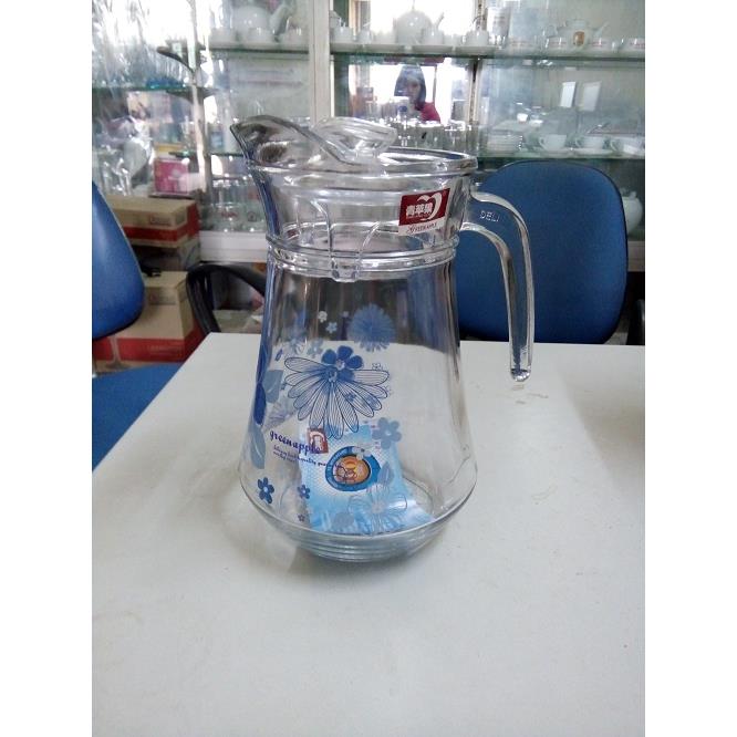 Chiếc bình có dung tích khá lớn, có tay cầm, miệng chìa ra dễ dàng trong việc rót nước, đồng thời có nắp cũng bằng thủy tinh giúp bảo đảm vệ sinh lượng nước chứa bên trong.