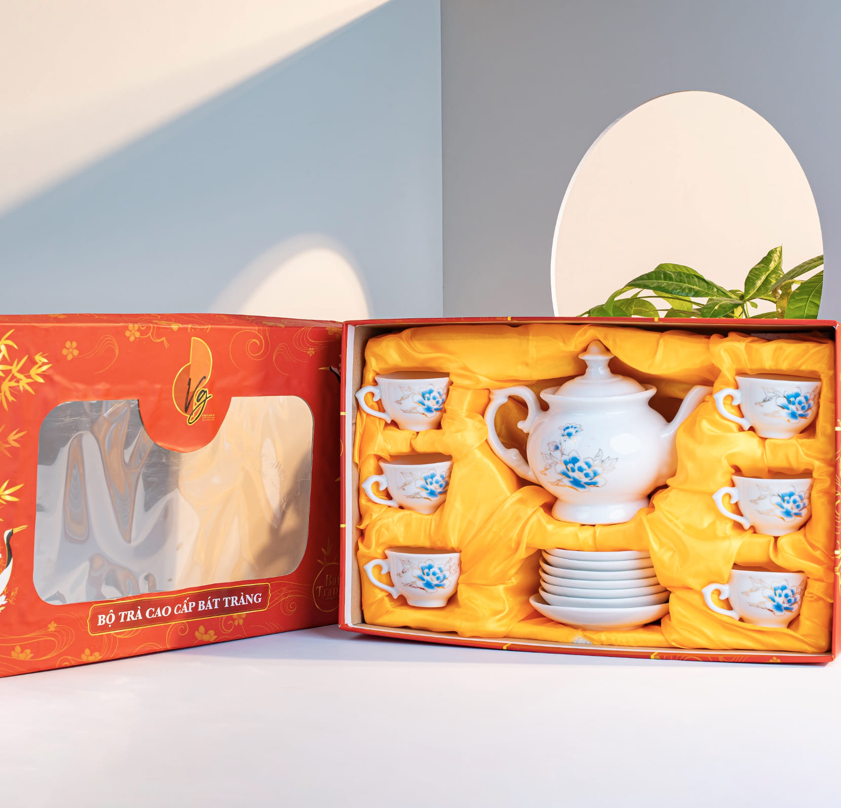 - Quà tặng sang trọng: Họa tiết hoa xanh độc đáo, bộ ấm trà này là món quà lý tưởng để tặng cho người thân, bạn bè hoặc đối tác trong những dịp đặc biệt như lễ tết, sinh nhật, hay kỷ niệm.