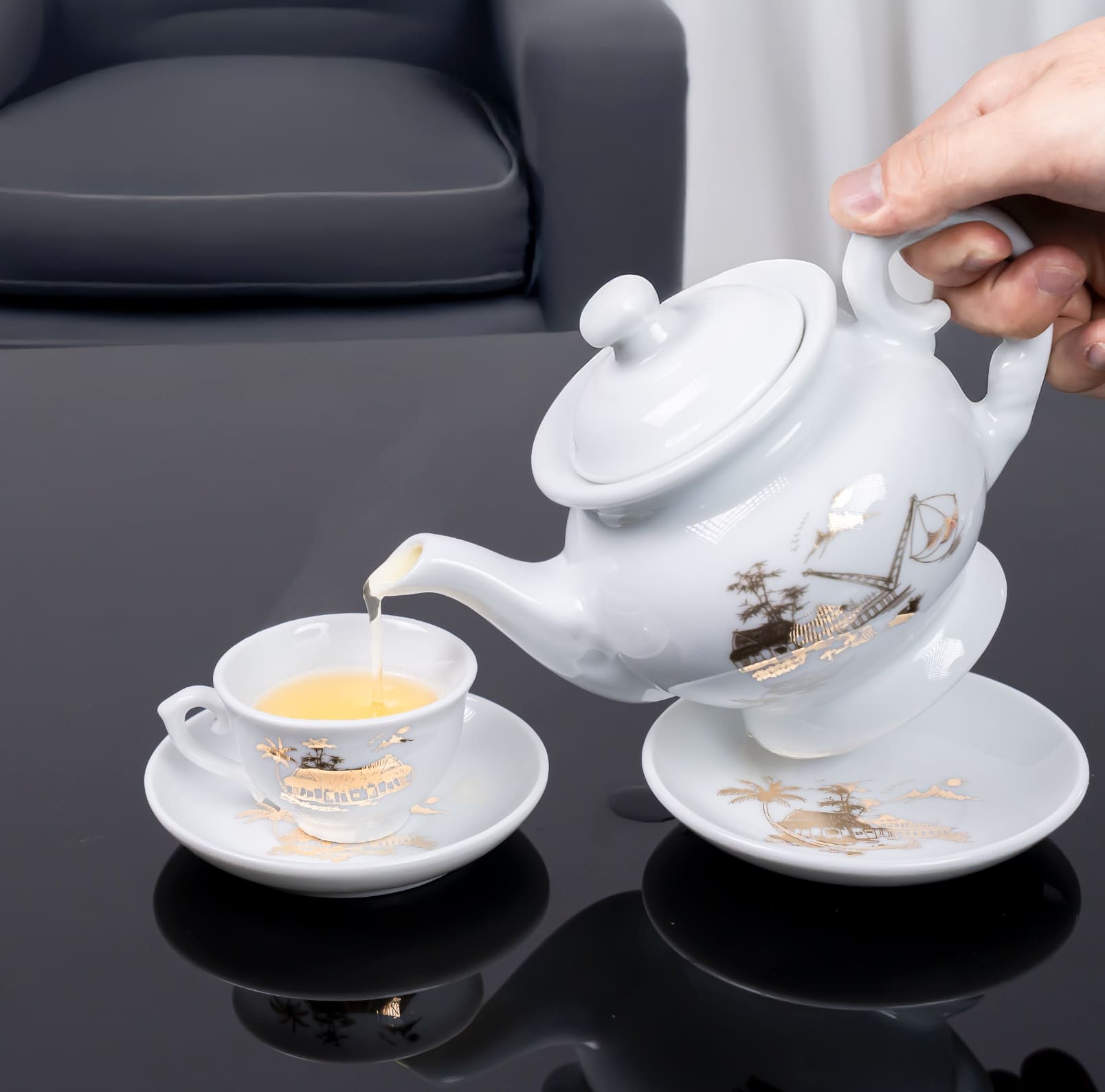 - Kích thước: Bộ sản phẩm gồm ấm trà và chén, lý tưởng cho những buổi tiệc trà ấm cúng bên gia đình và bạn bè.