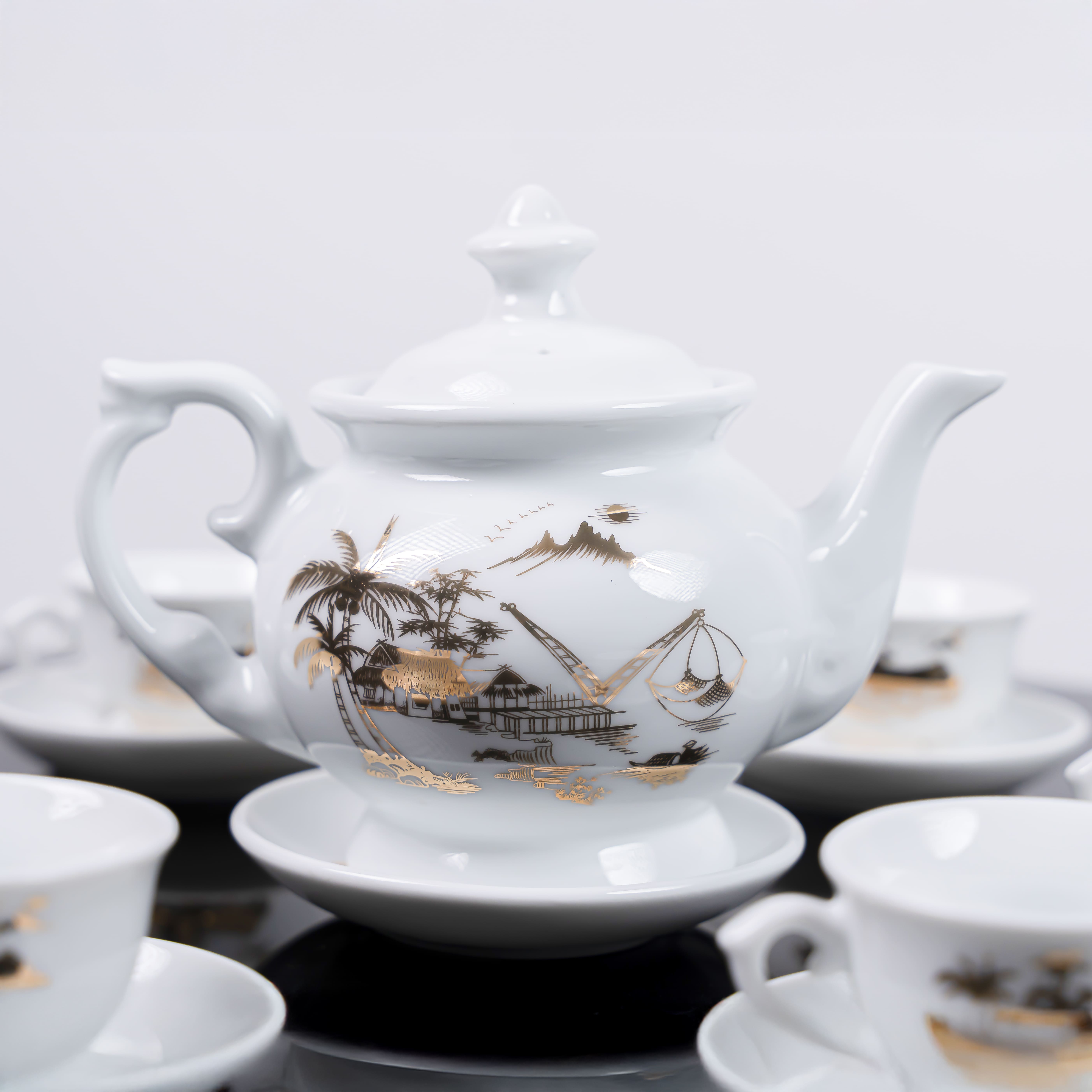 Bộ ấm trà Bát Tràng cao cấp in họa tiết - Quà tặng đẳng cấp cho người thân, bạn bè, đối tác