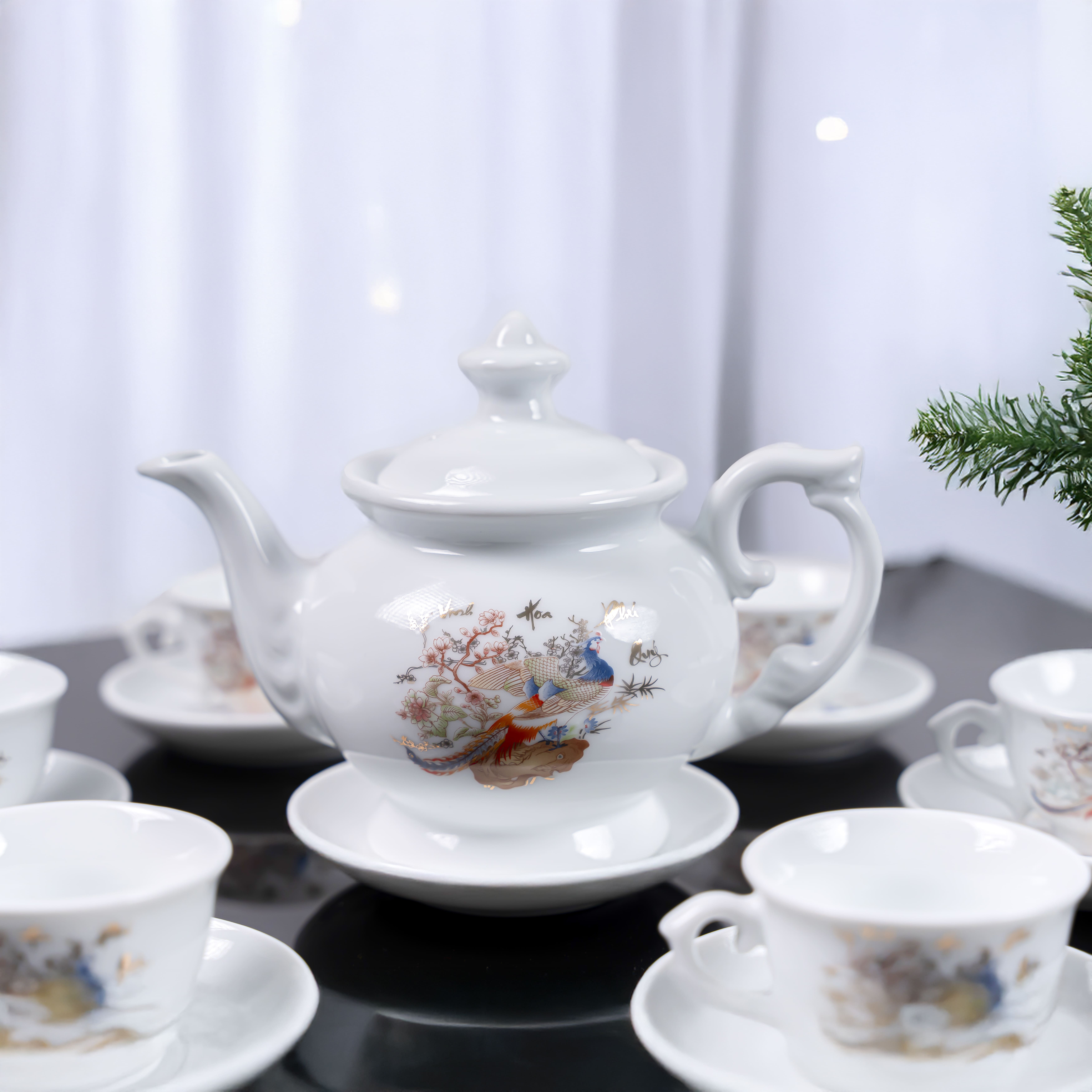 - Kích thước: Bộ sản phẩm bao gồm ấm trà và chén, hoàn hảo cho những buổi thưởng trà cùng gia đình và bạn bè.
