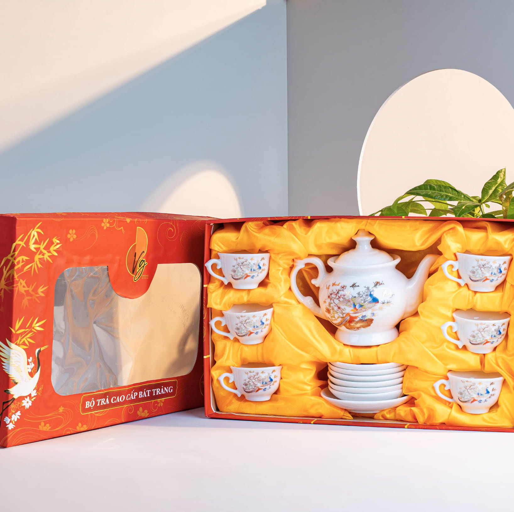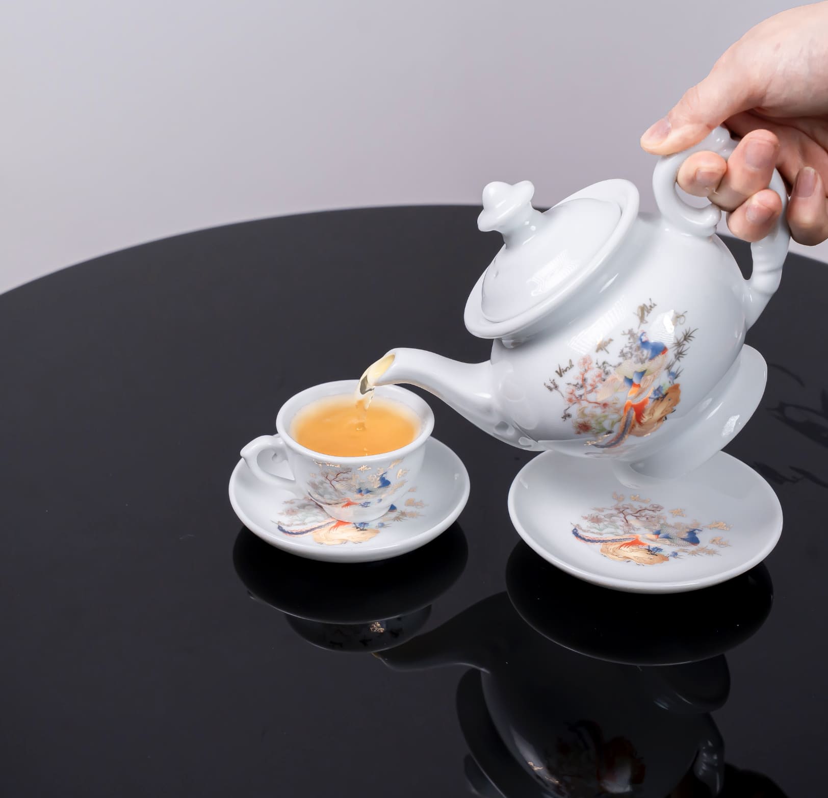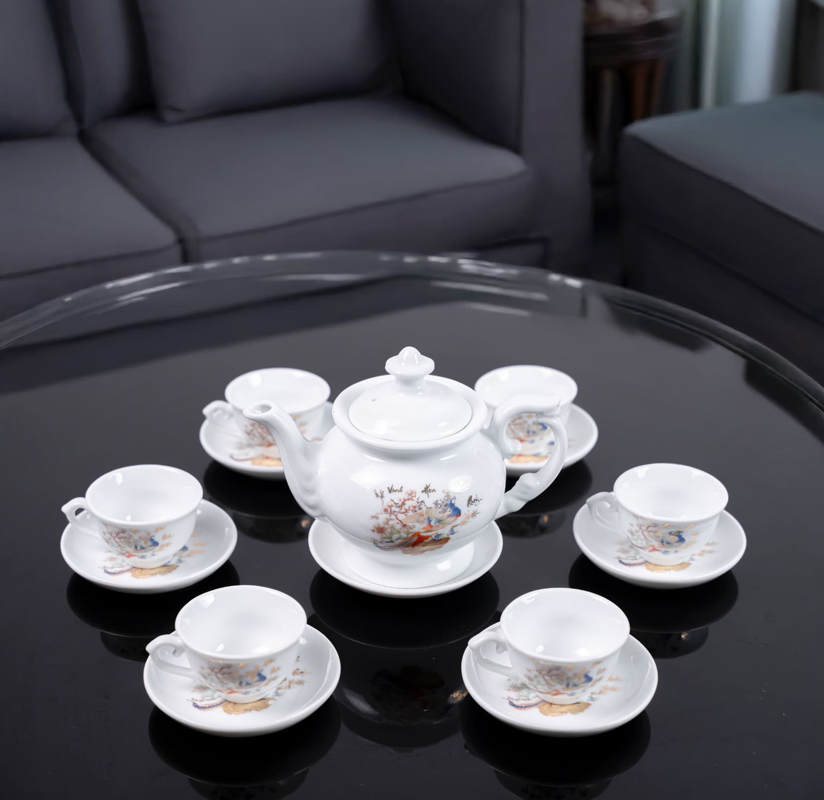 Đặc điểm nổi bật của Bộ ấm trà Bát Tràng cao cấp Vinh Hoa Phú Quý hoạ tiết chim công: