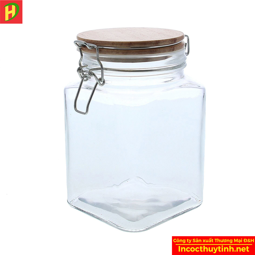 Hũ thủy tinh nắp gỗ gài tiện dụng