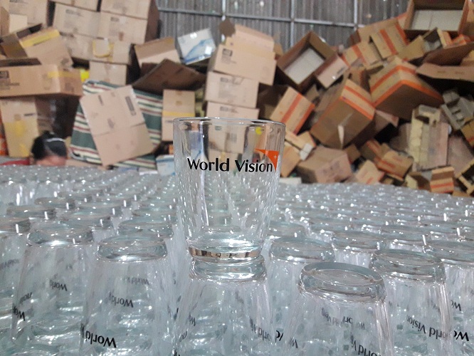 ***Bộ cốc thuỷ tinh Việt Tiếp in logo World Vision với giá cực kỳ rẻ, cốc trong và khách hàng rất ưng ý: