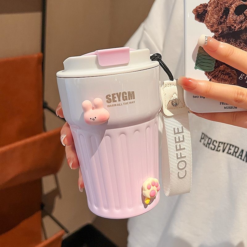 TÊN SẢN PHẨM: Ly giữ nhiệt inox 304 cao cấp dung tích 400ml có dây xách 4 màu pastel dễ thương dùng đựng coffee hoặc đá lạnh