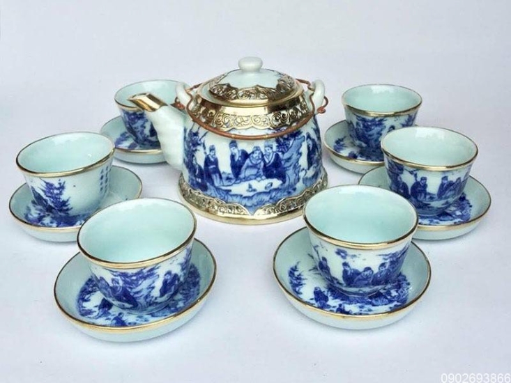 Nhắc tới các dòng ấm chén Bát Tràng độc đáo, ấn tượng sẽ không thể bỏ qua dòng sản phẩm bộ ấm chén sứ men lam. Trên mỗi sản phẩm được nghệ nhân ghi dấu lên những câu chuyện khác nhau với những ý nghĩa vô cùng đặc biệt.
