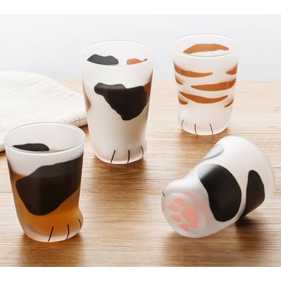 Loại cốc này thì được sử dụng chất liệu thủy tinh trong mờ nên dễ dàng tạo nên những hình in tay mèo đáng yêu vô cùng đa dạng màu.