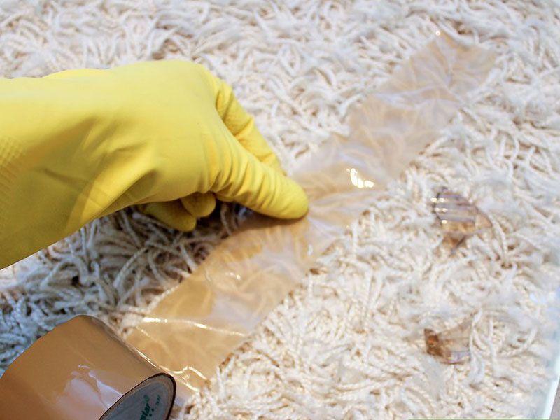 - Sử dụng băng dính: Ngoài ra bạn còn có thế lấy sạch vụn thủy tinh nhờ băng dính nhưng nếu dùng cách này bạn nhớ đeo găng tay cao su, bởi thủy tinh có thể đâm xuyên qua lớp băng.