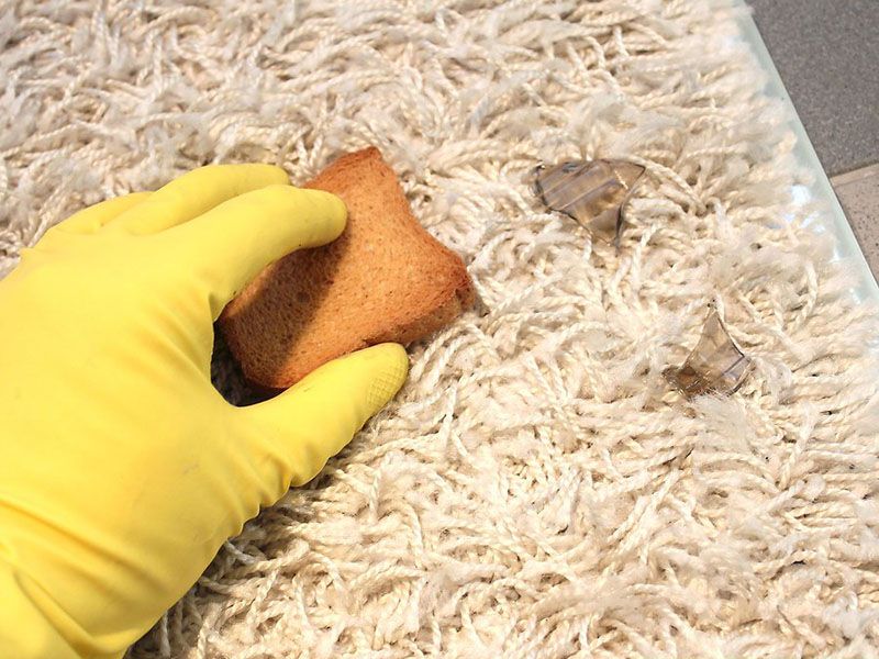 - Dùng bánh mì: Bạn lấy một vài lát bánh mì sandwich, với bánh mì ổ bạn cắt bánh thành nhiều lát mỏng. Đặt lát bánh mì lên nơi có vụn thủy tinh, dùng tay ấn nhẹ trên bề mặt bánh mì. Bánh mì cũ thường sẽ mềm nhũn và ẩm do đó có khả năng hút vụn thủy tinh rất tốt. Sau khi vụn thủy tinh ghim hết vào bánh mì chỉ cần gói gọn trong túi rác và bỏ đi là xong.